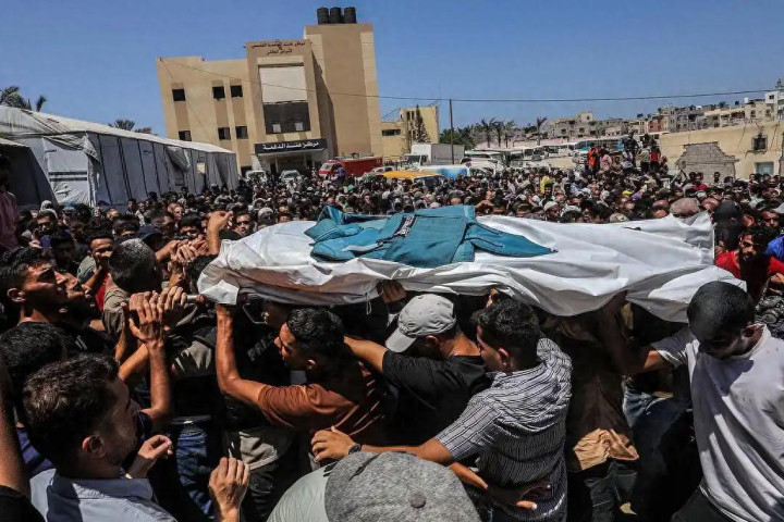 当地时间 8 月 25 日,以色列国防军空袭了巴勒斯坦加沙地带南部汗尤尼斯市的纳赛尔医院。